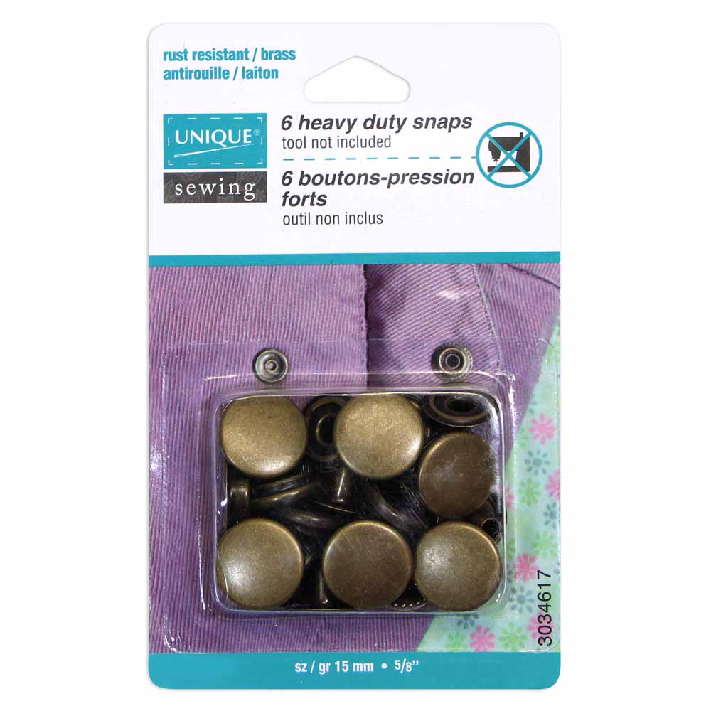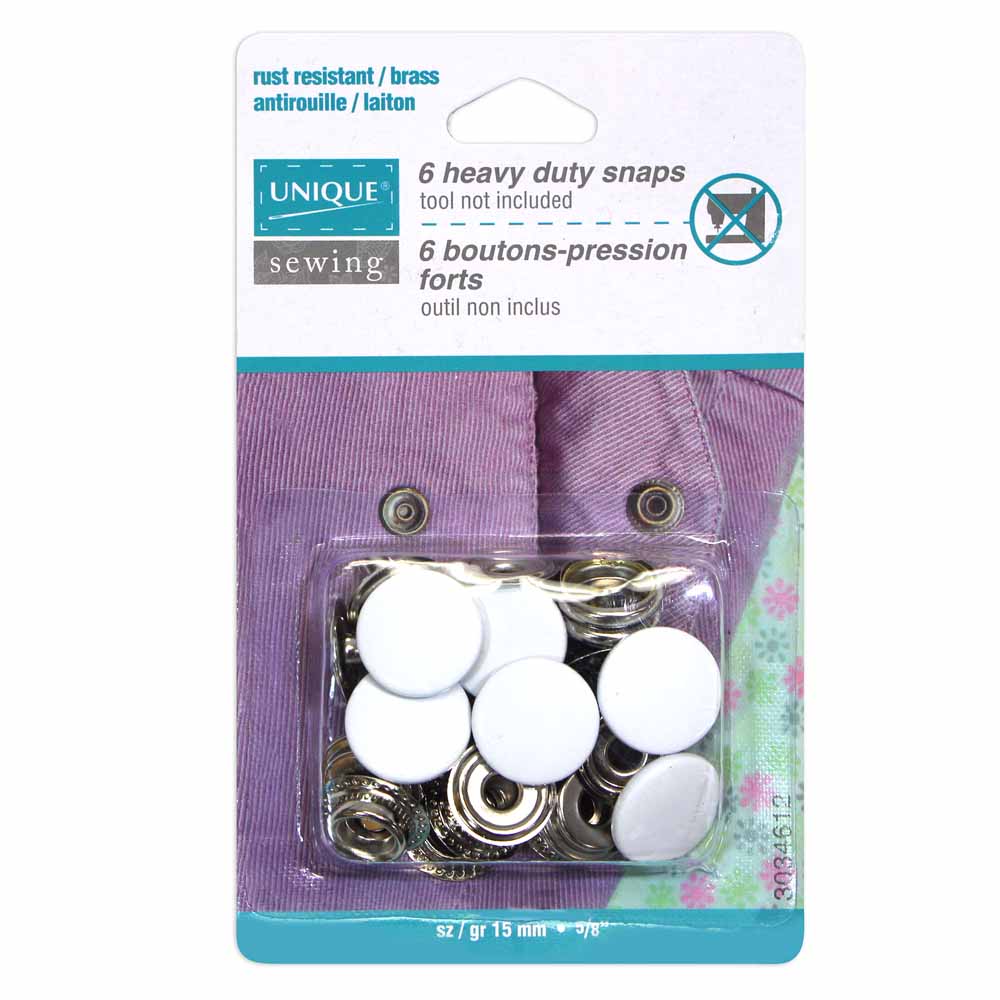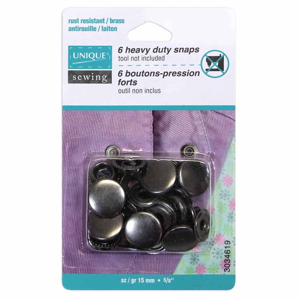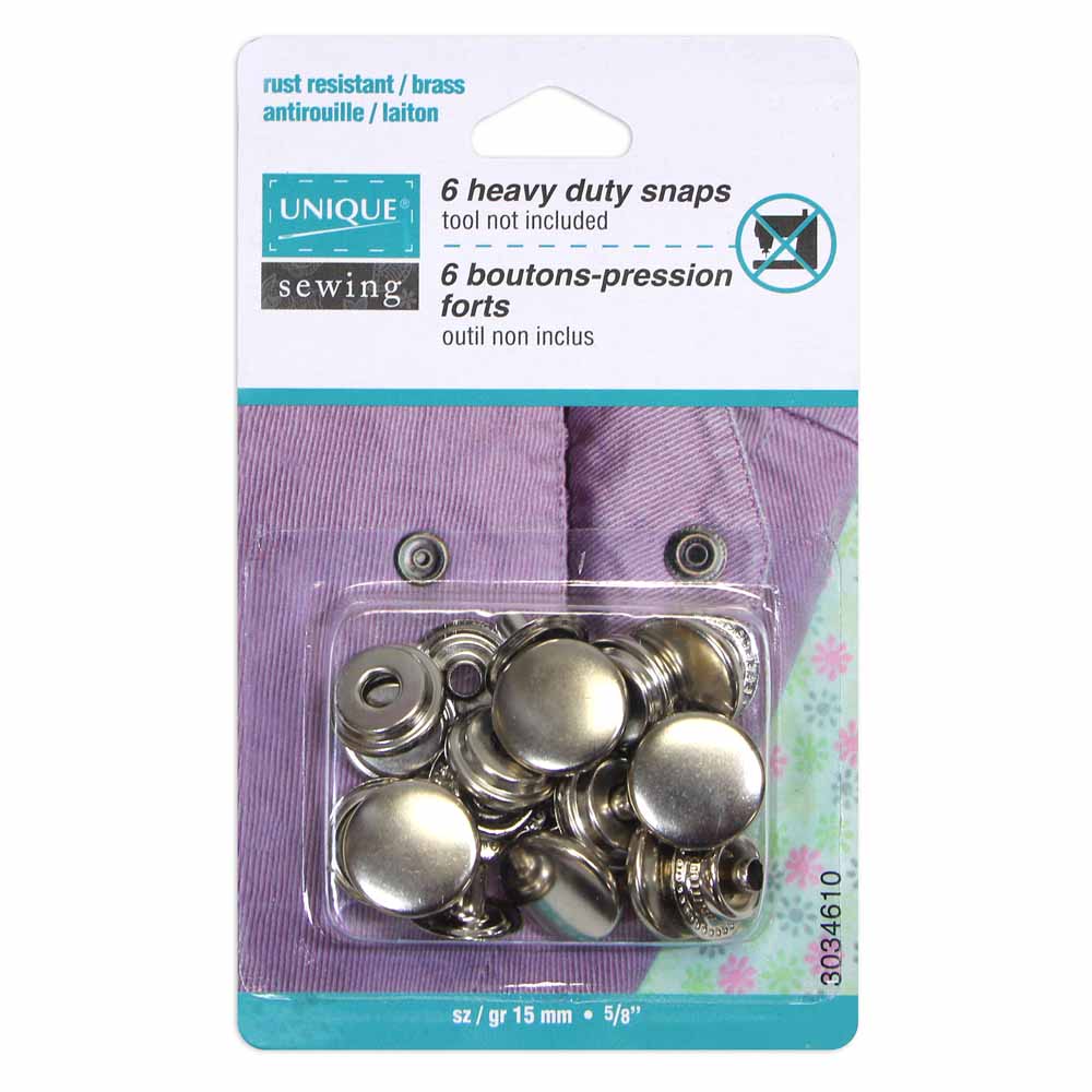 No-sew, heavy duty, rust resistant snaps. For firm, heavy weight materials. Tool not included.