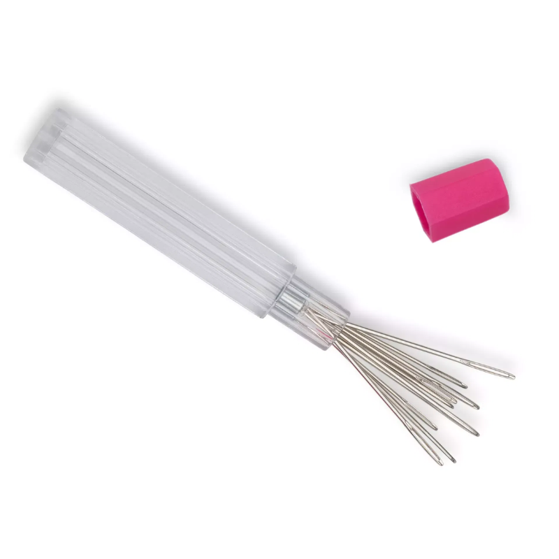 Product by Prym Love. Contains 10 embroidery needles and is suitable for the safe storage of embroidery needles up to five centimeters long. An integrated magnet keeps the needles firmly in place in the storage container - even when the embroidery needles are removed.