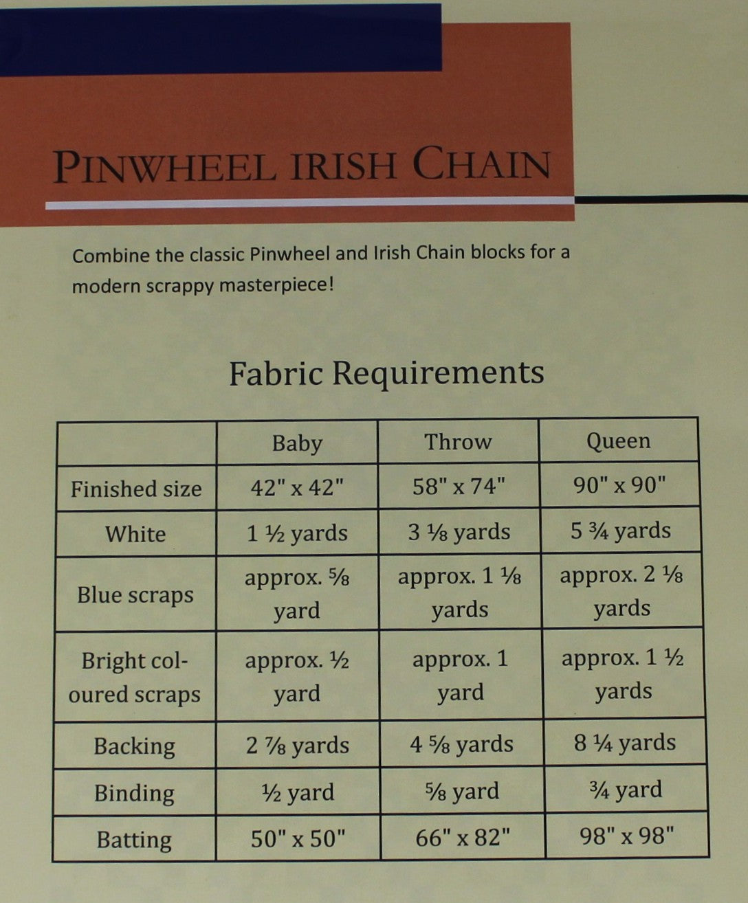 Finished Size: Baby Quilt (42" x 42") Throw Quilt (58" x 74") Full Quilt (90" x 90")